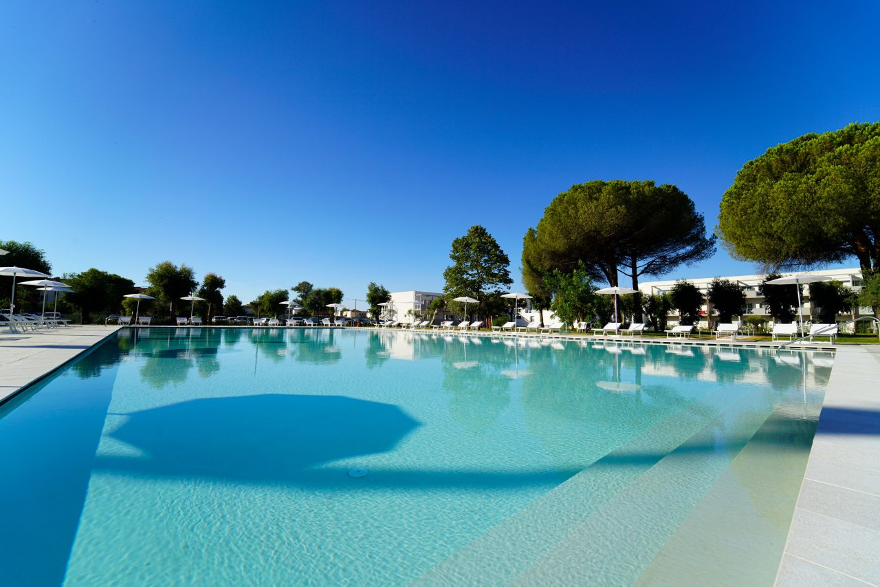 piscina con zona bambini attrezzata con lettini e ombrelloni ad esaurimento