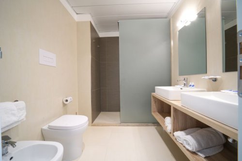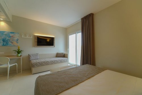 Le camere, moderne, luminose ed elegantemente arredate, sono tutte dotate di telefono, tv, cassetta di sicurezza, frigobar, aria condizionata, connessione wi-fi, servizi con doccia e asciugacapelli, quasi tutte con balcone o patio attrezzati. Camere Comfort Vista Parco per 2/5 persone; camere Comfort Vista Mare per 2/4 persone; Camere Superior per 3/5 persone, più ampie e confortevoli, tutte vista mare con ampia vetrata che offre una vista spettacolare e dotate di macchinetta per caffè espresso, tisane e thè, cassaforte, servizi con asciugacapelli e box doccia. Disponibili su richiesta camere per diversamente abili. Le camere Comfort Vista Parco e Vista Mare per 3 persone possono essere triple (occupazione massima 3 adulti + culla) o doppie con letto aggiunto (occupazione massima 2 adulti + 1 bambino 12 anni).
