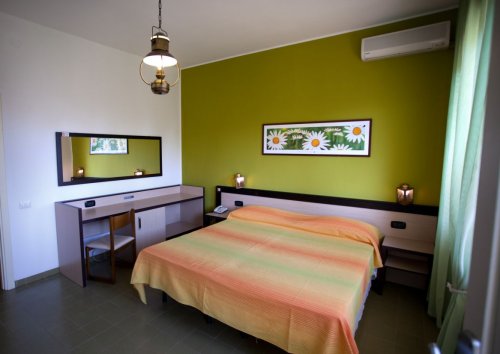 Doppie, triple e quadruple (con letto a castello) tutte dotate di aria condizionata, servizi privati con doccia, asciugacapelli, telefono, minifrigo, tv. Infant 0-3 anni non compiuti gratis nel letto con i genitori o in culla propria, pasti da menù inclusi, da segnalare alla prenotazione. Il cambio della biancheria da letto avviene una volta alla settimana, mentre per quella da bagno è a giorni alterni.