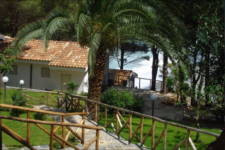 Direttamente sul mare. Percorrendo un grazioso sentiero gradinato e lievemente in discesa che attraversa la pineta, si raggiunge la bellissima spiaggia privata di sabbia e ghiaia, dotata di moderno stabilimento balneare con snack bar. A disposizione degli ospiti un ombrellone, un lettino e una sdraio a camera.
