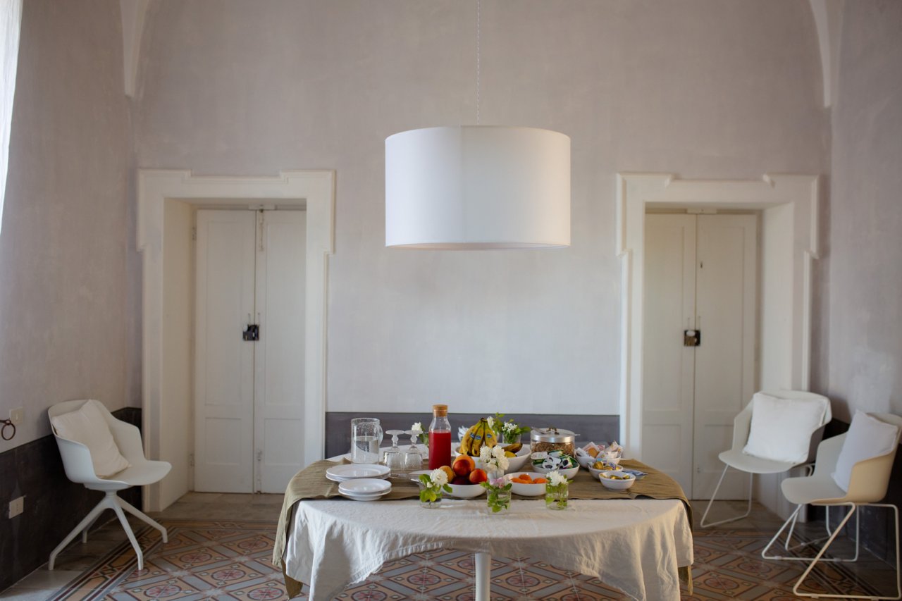 La proposta gastronomica valorizza i sapori autentici della tradizione pugliese. La colazione viene preparata nella cucina a vista con prodotti selezionati e preparazioni espresse, mentre su richiesta è possibile organizzare pranzi e cene private con chef dedicati, per un’esperienza conviviale su misura, essenziale e non ostentata, profondamente legata al territorio.