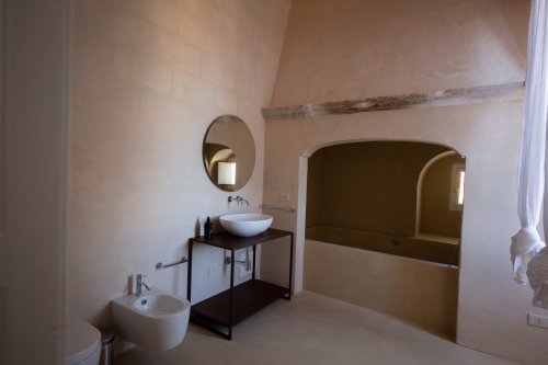 L’offerta dei servizi è concepita in chiave sartoriale, nel pieno rispetto del ritmo lento che caratterizza l’esperienza in masseria. La piscina con solarium, incastonata tra pietra e natura, offre momenti di assoluta quiete e relax, in un contesto di totale privacy. Nel cuore della struttura si trova una SPA ricavata interamente nella pietra di un antico frantoio, sapientemente recuperato e valorizzato. Il percorso benessere comprende vasche rigenerative con acqua calda, tiepida e fredda, bagno turco, sauna, docce sensoriali, oltre a massaggi e trattamenti personalizzati. Un ambiente intimo e suggestivo, dove la memoria storica del luogo si fonde con il comfort contemporaneo, permettendo a corpo e mente di ritrovare equilibrio e armonia.
