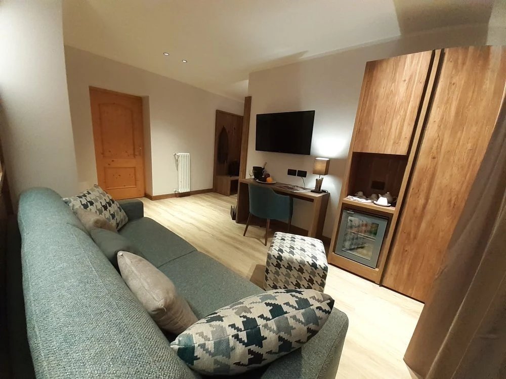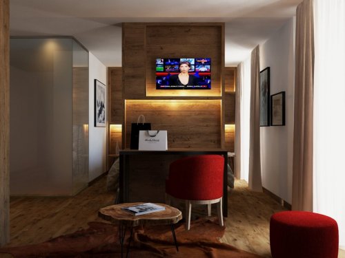 Camere completamente ristrutturate, arredate in tipico stile tirolese, sono tutte dotate di telefono, tv, servizi con vasca o doccia e asciugacapelli. Si dividono in Superior per 2 persone composte da camera matrimoniale; Suite per 2/4 persone, con camera matrimoniale e divano letto doppio; Suite Deluxe per 2/4 persone con camera matrimoniale, divano letto doppio e doppi servizi; Suite Premium per 2/6 persone, con letto matrimoniale, 2 divano letto doppi e doppi servizi.